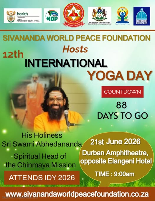 89 days to go for the #12th InternationalDayofYoga International Day of Yoga 2026, let yoga rise as the thread that unites humanity. 21st June at the Durban Amphitheatre opposite Elangeni Hotel. Creating Oneness and togetherness amongst the citizens of South Africa through Yoga